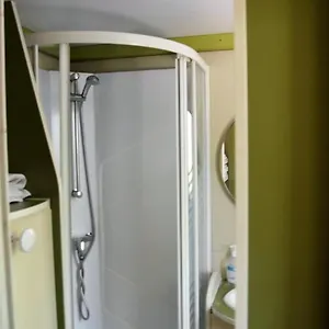Además de un cuarto de baño privado, Camping De Besalu Hotel también ofrece una pequeña cocina con un horno de microondas, una nevera grande y una placa de cocina.